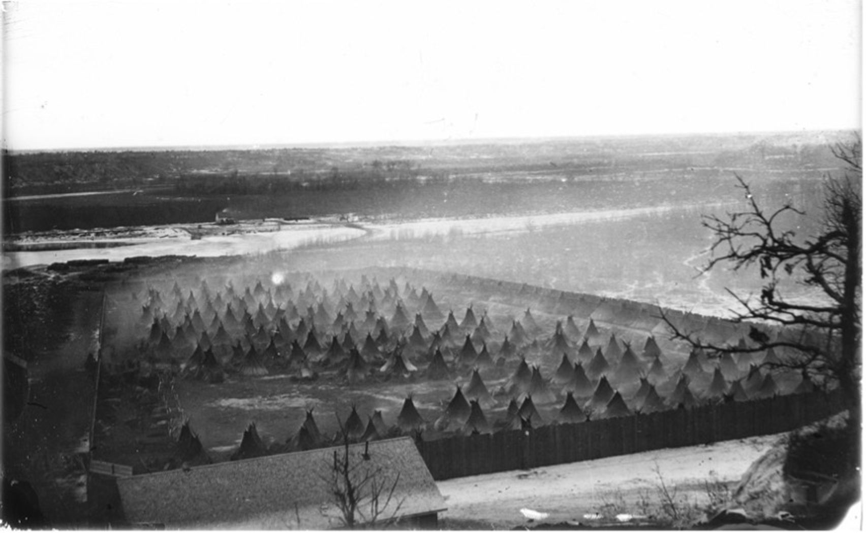 In the early 1800s, white settlers sought to establish a military fort and trading post at Bdote.Lieutenant Zebulon Pike negotiated a treaty with the Dakota people to build what would become Historic Fort Snelling. Pike paid the Dakota only ten percent of the land’s value. The U.S. president did not approve Lieutenant Pike’s land expedition and, thus, Pike did not have legal standing to represent the government’s interests. But then as now, the illegality of Federal agents’ actions did not faze the state actors. After a few years of construction, Fort Snelling opened in 1825. Throughout its first decade, military personnel and fur traders relied extensively on the labor of enslaved Africans. The practice of enslavement was illegal in the land that would become Minnesota, but slavery continued nonetheless. Dozens of enslaved people lived, loved, and labored at Fort Snelling, including Harriet Robison and Dred Scott. They met and were eventually married there. Inspired by a successful freedom case filed in Missouri—the plaintiff was Rachel, an enslaved woman held captive at Fort Snelling—the Scotts sued for their own freedom. As we know, their 1857 case (Scott v. Sanford)went to the Supreme Court, which ultimately found that Black people were not people at all and therefore had none of the rights afforded to citizens. The next year, Minnesota became a state. After the Dakota Uprising of 1862, Fort Snelling was the site of the mass execution of Dakota freedom fighters and then became an internment camp used to imprison Dakota women, children, and elderly people.